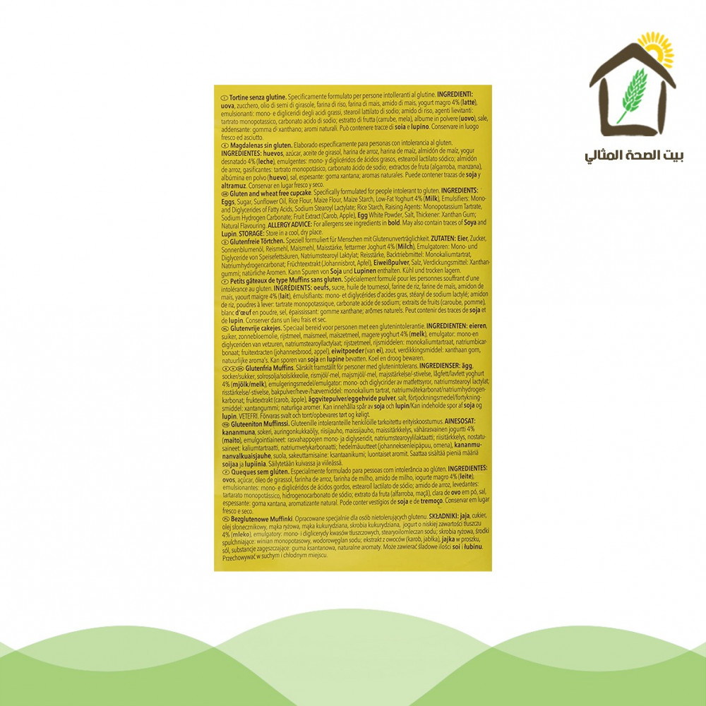 بيض ، سكر ، زيت دوار الشمس عالي الأوليك ، دقيق أرز ، دقيق ذرة ، نشاء ذرة ، مثبت: زبادي خالي من اللاكتوز السوربيتول 4،1٪ (حليب خالي من اللاكتوز) ، نشا البطاطس ، دقيق الذرة ، شراب الجلوكوز ، نشا الأرز ، الألياف النباتية (حمضيات ) ، عوامل التربية: ثنائي فوسفات ثنائي الصوديوم ، بيكربونات الصوديوم ؛ مستحلب: أحادي وثنائي الجلسريدات من الأحماض الدهنية ؛ مكثفات: صمغ الغوار ، صمغ الزانثان ؛ مسحوق بياض البيض ، ملح ، منكهات طبيعية . قد تحتوي على آثار من فول الصويا . خالية من اللاكتوز (اللاكتوز <70 جزء في المليون) .